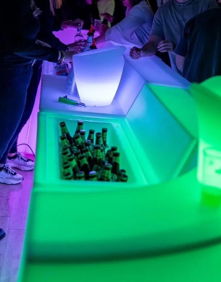 Combineer 6 stuks voor een proffessionele en metersbrede bar (Ruim 5 meter). Bestaande uit een hoek element, een variant met een ijsbak waar drankjes in koel kunnen worden gehouden en een variant die kan worden gebruikt om te schenken en uit te serveren.