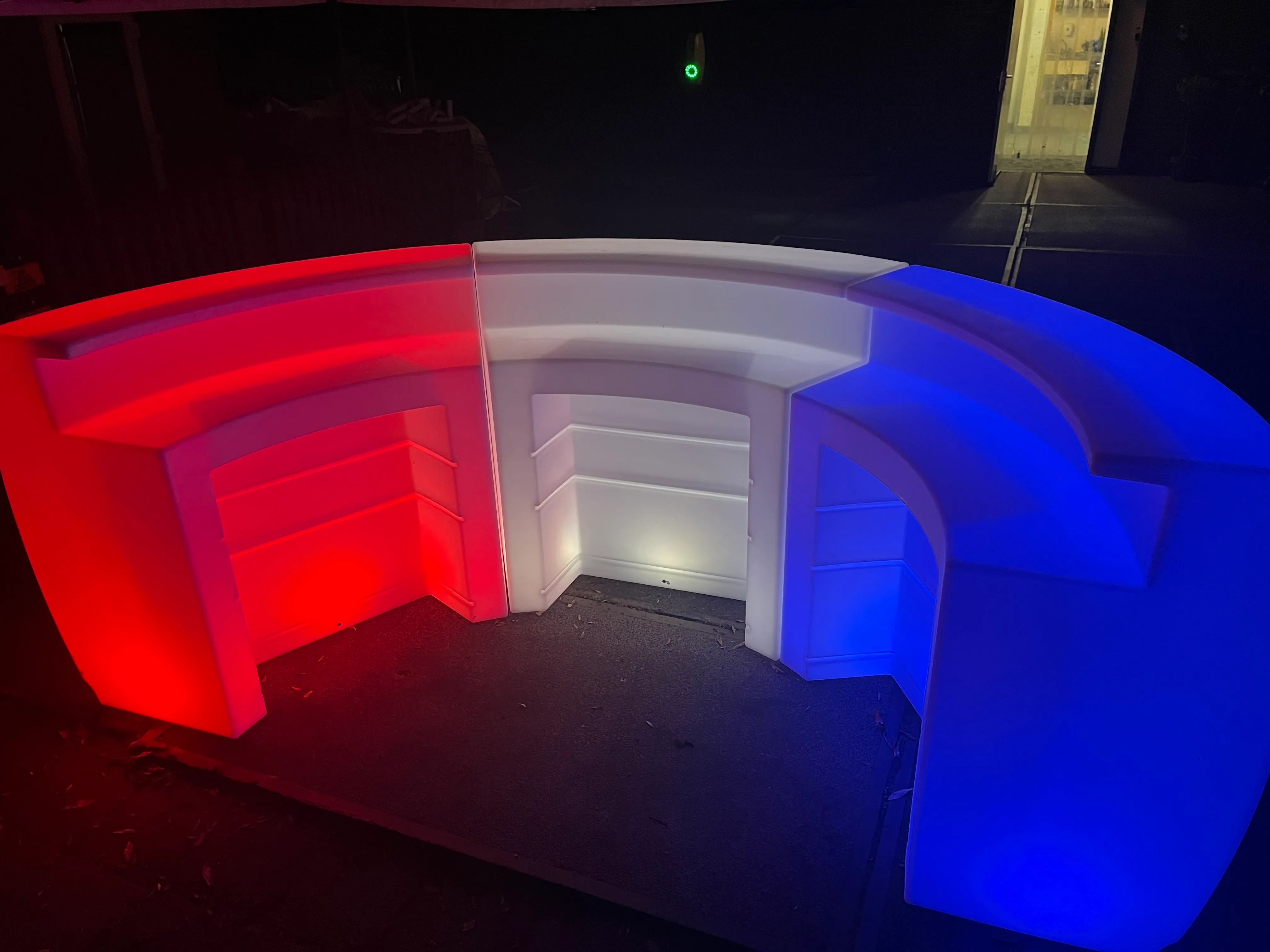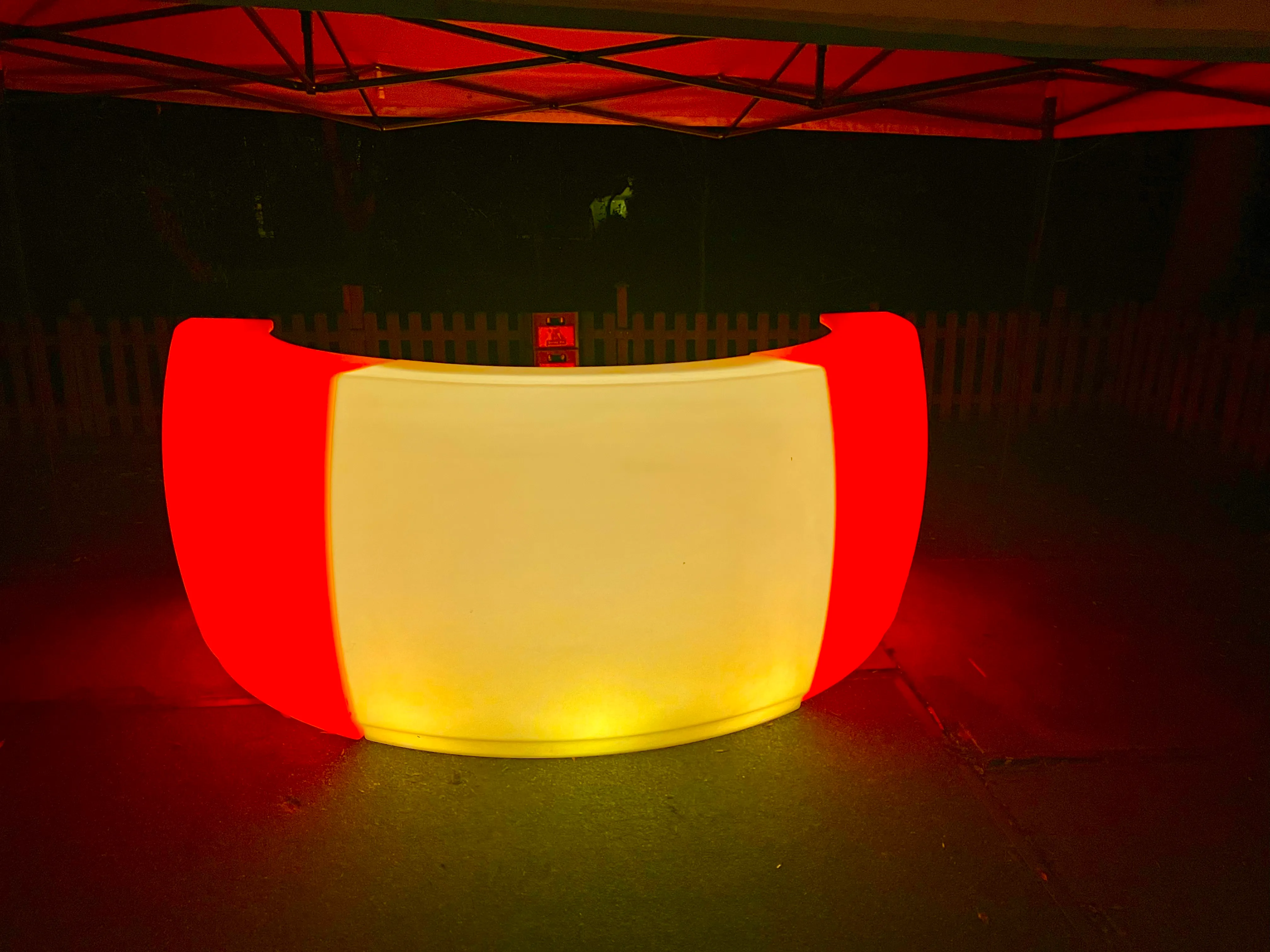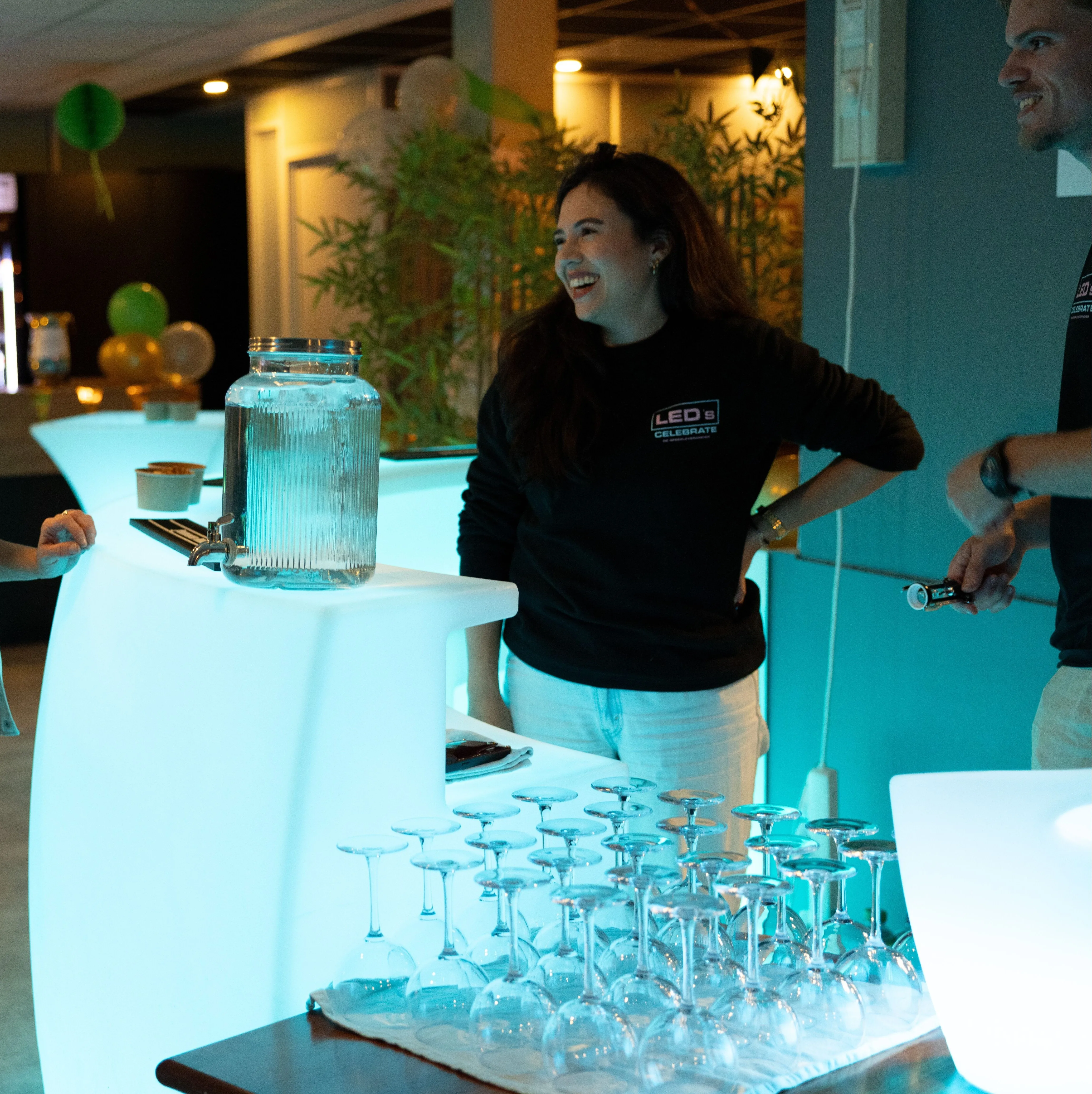 Maak indruk met de ronde LED-verlichte bar van LED’s Celebrate. Deze bar is los te huren met een maximum van drie onderdelen, waarmee je een perfecte halve cirkel vormt. Dankzij de verstelbare LED-kleuren kan elk onderdeel in een andere kleur verlichten, waardoor je de bar zelf eenvoudig kunt afstemmen op elk thema: van een Italiaanse bar tot een Spaanse of Franse bar.